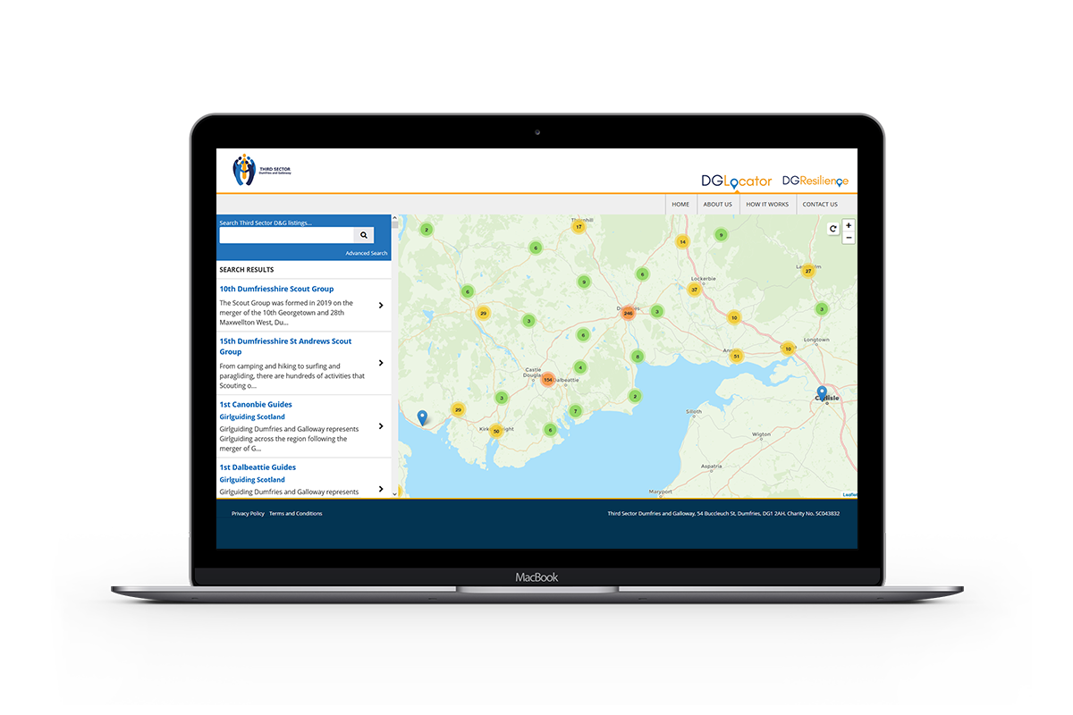 In addition to the website, BDSDigital were asked to develop DGLocator, an iOS and Android app that would help to promote the services provided by third sector organisations across the region. The app is a free download and comprises a searchable map of the region with pinned content that can be filtered by location or service category. A companion map DGResilience aims to assist with COVID-19-related assistance.