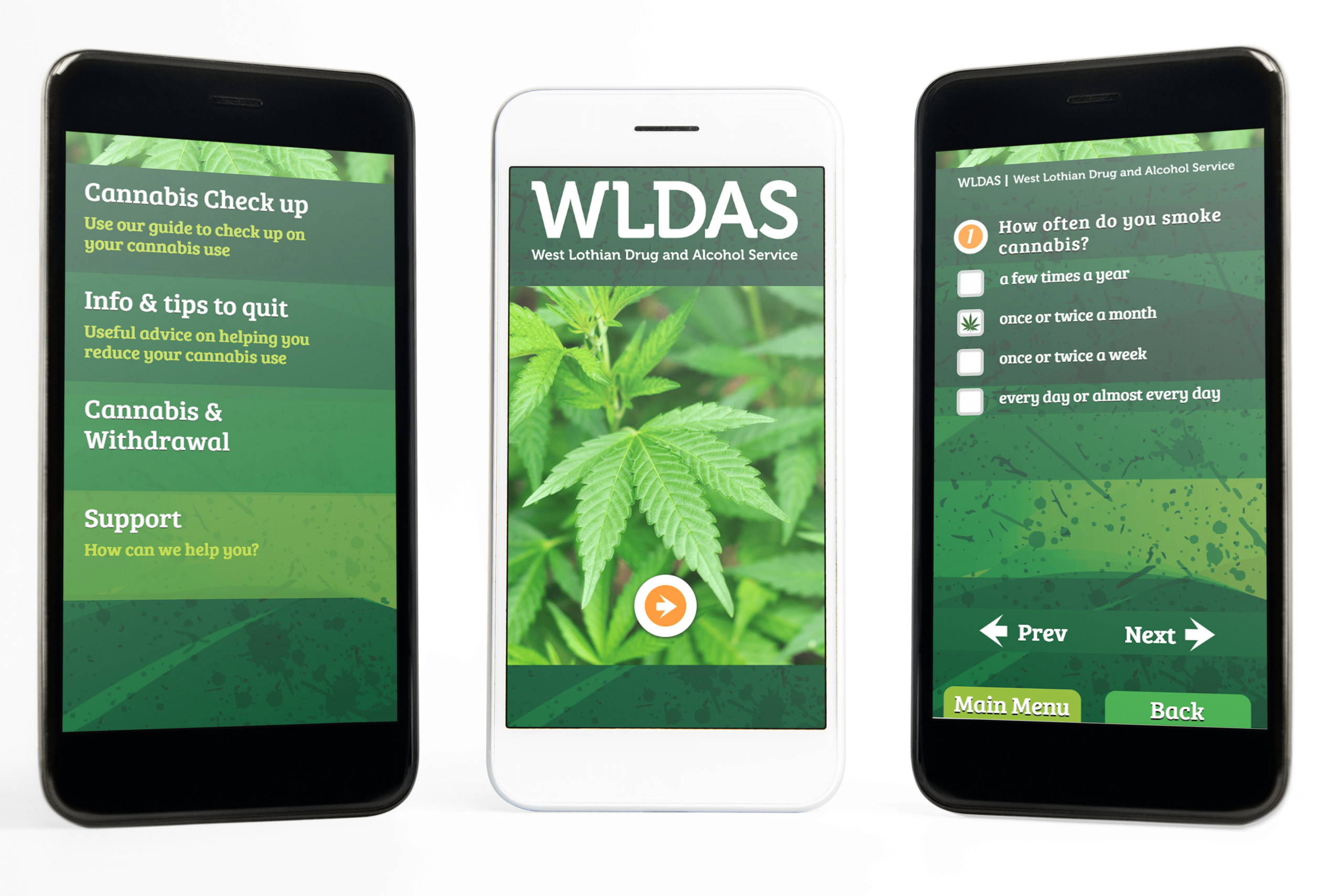 A second app for WLDAS gave advice and information on quitting cannabis. It included a short questionnaire on personal drug usage which generated feedback on addiction levels and the risks of usage.