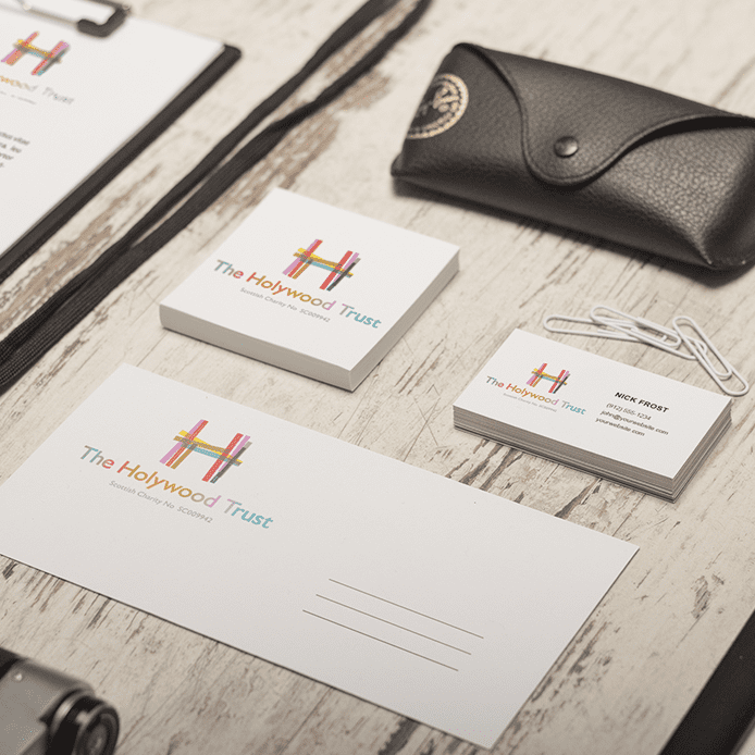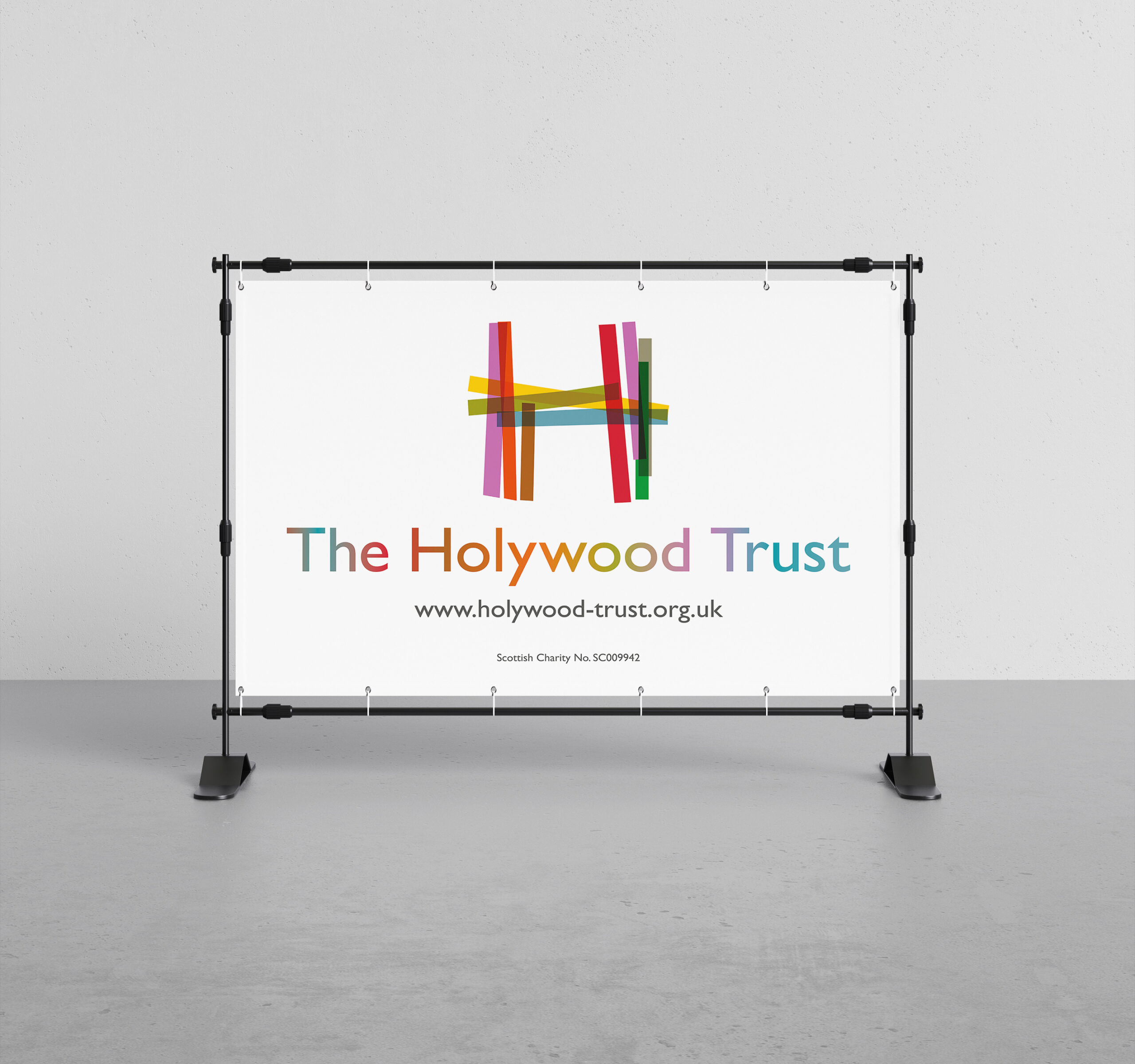 The Holywood Trust logo needed to be dynamic and reference the varied projects the Trust supports hence it is built from coloured sticks in the shape of an H. The slightly subdued colours suggest the fun and serious aspects of the charity. We carried the branding through to their website and print projects.