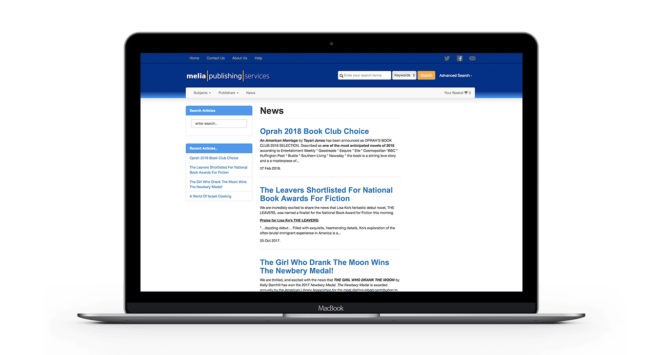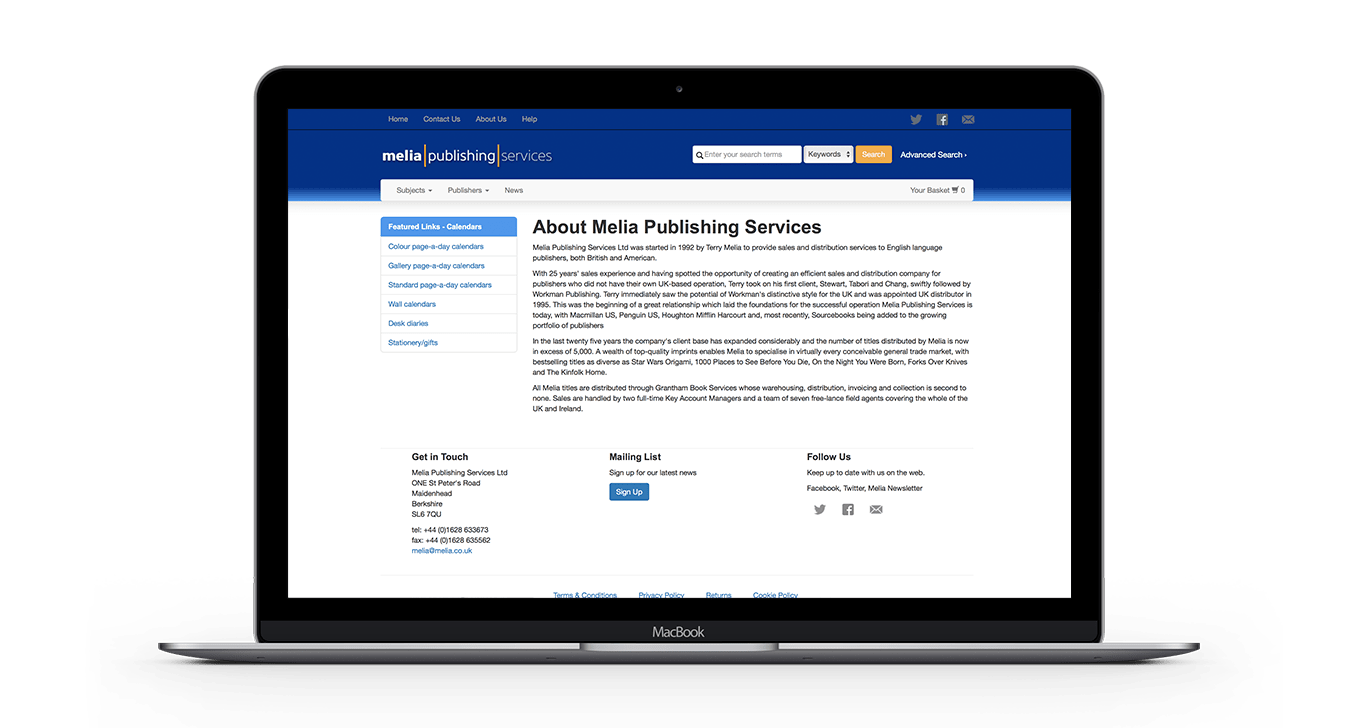 The BDSDigital Publishing Management Software streamlined Melia’s workflow and the website acts as a central repository for all the data for each title, including jacket images and related media files. Our easy to use CMS makes it easy to add new titles and update price and availability information on existing titles and produce catalogues for sales agents and the trade.