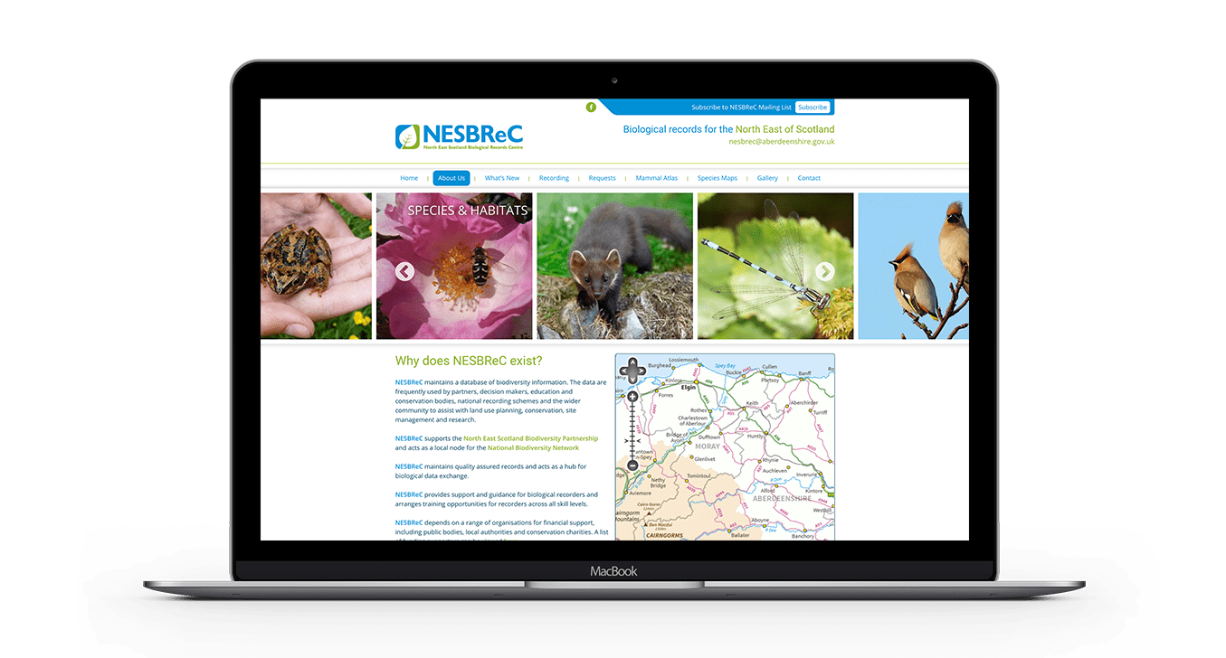 NESBReC collates, manages and provides biological information for the North East of Scotland. The organisation covers Aberdeenshire, Aberdeen City, Moray and the Cairngorms National Park. NESBReC maintains a database of biodiversity information, frequently used by partners, decision makers, education and conservation bodies, national recording schemes and the wider community to assist with land use planning, conservation, site management and research.
